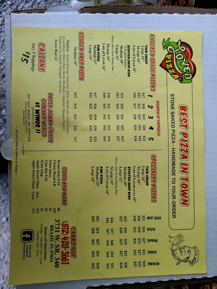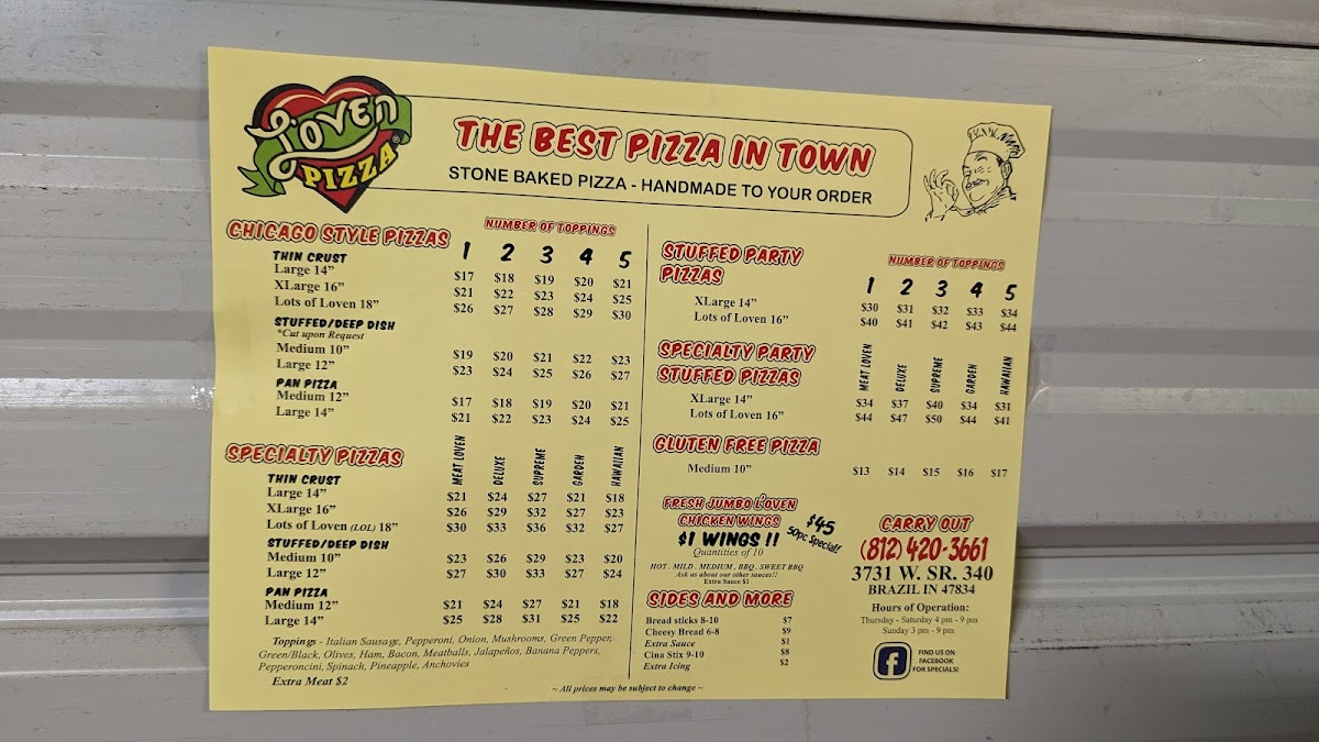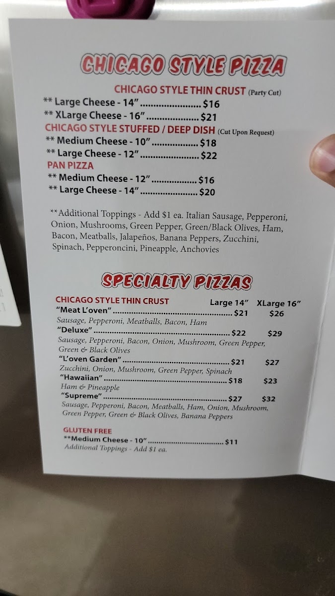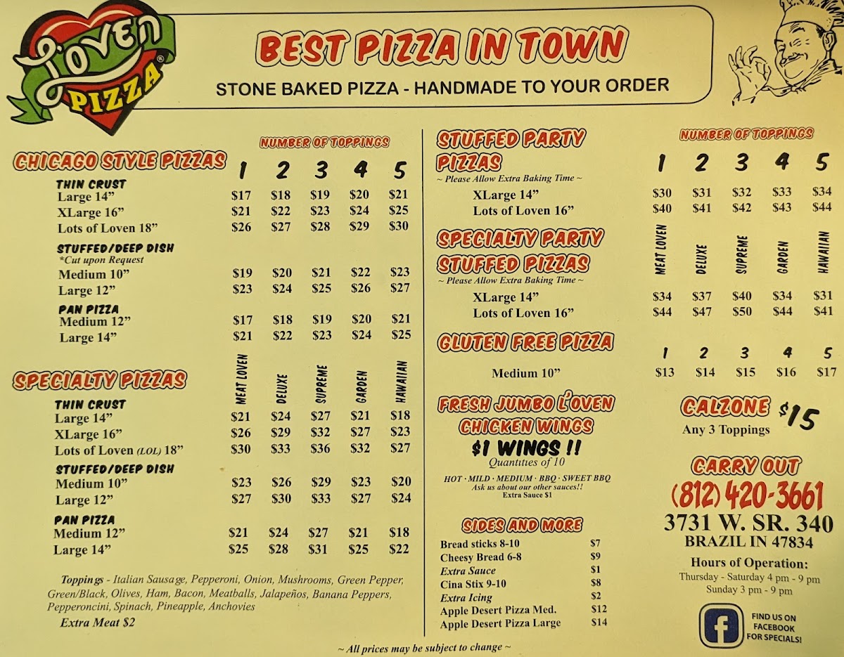 Welcome to L'oven Pizza, a culinary gem located in Brazil, IN, known for its masterful take on Chicago-style pizza. The menu proudly features three delectable options: thin crust, pan, and their renowned stuffed deep dish. Each pizza is crafted with care, never skimping on ingredients, ensuring a rich and satisfying experience.